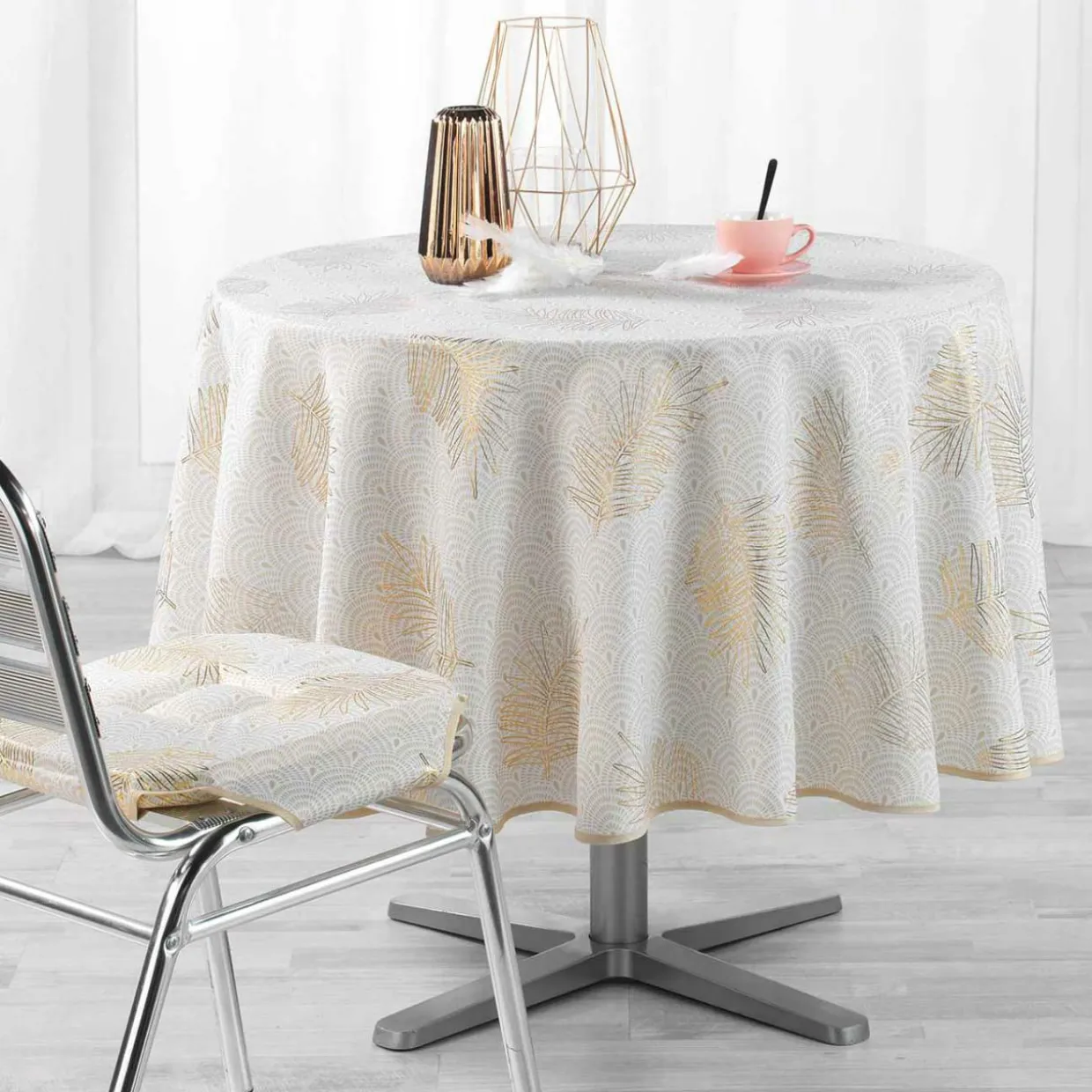 Finition : couture biais. Impression métallisée. anti-taches.