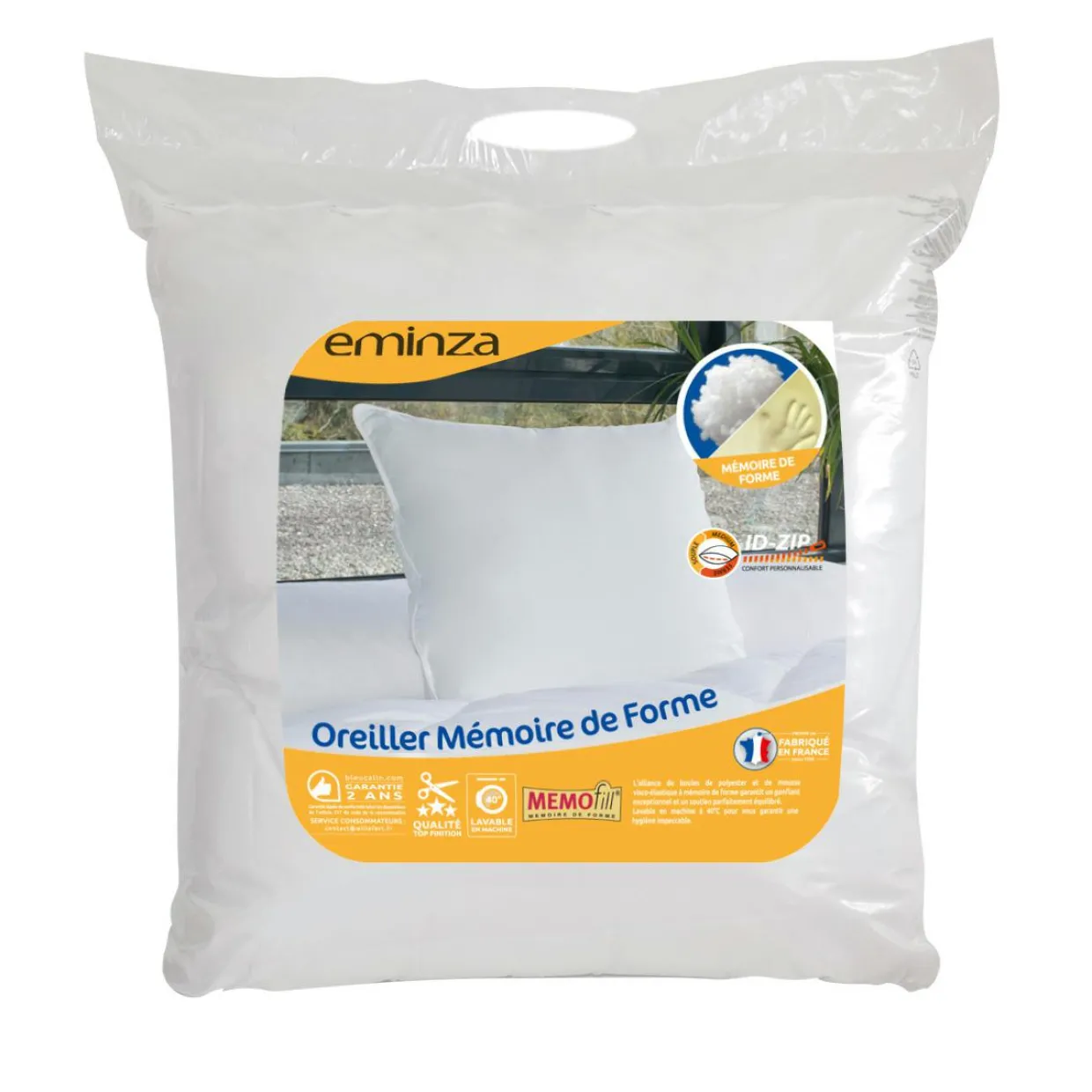 Garnissage : 50% fibre creuse polyester siliconnée et 50% de mousse viscoélastique à mémoire de forme 750 gr/m².