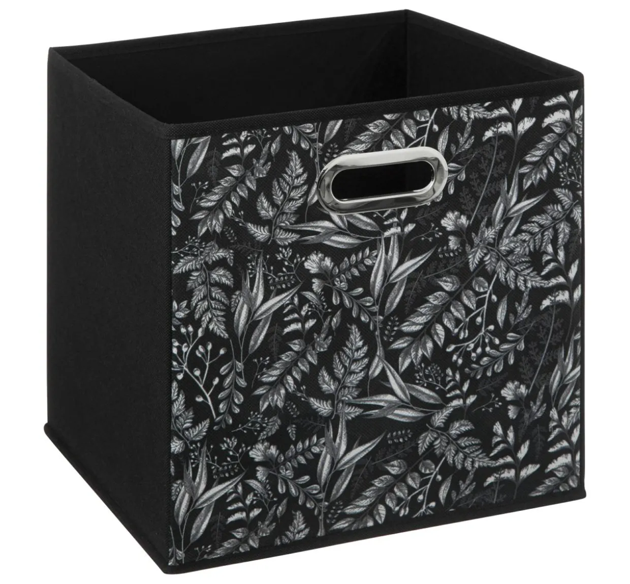 Imprimé : panier à motif végétal et à poignée.