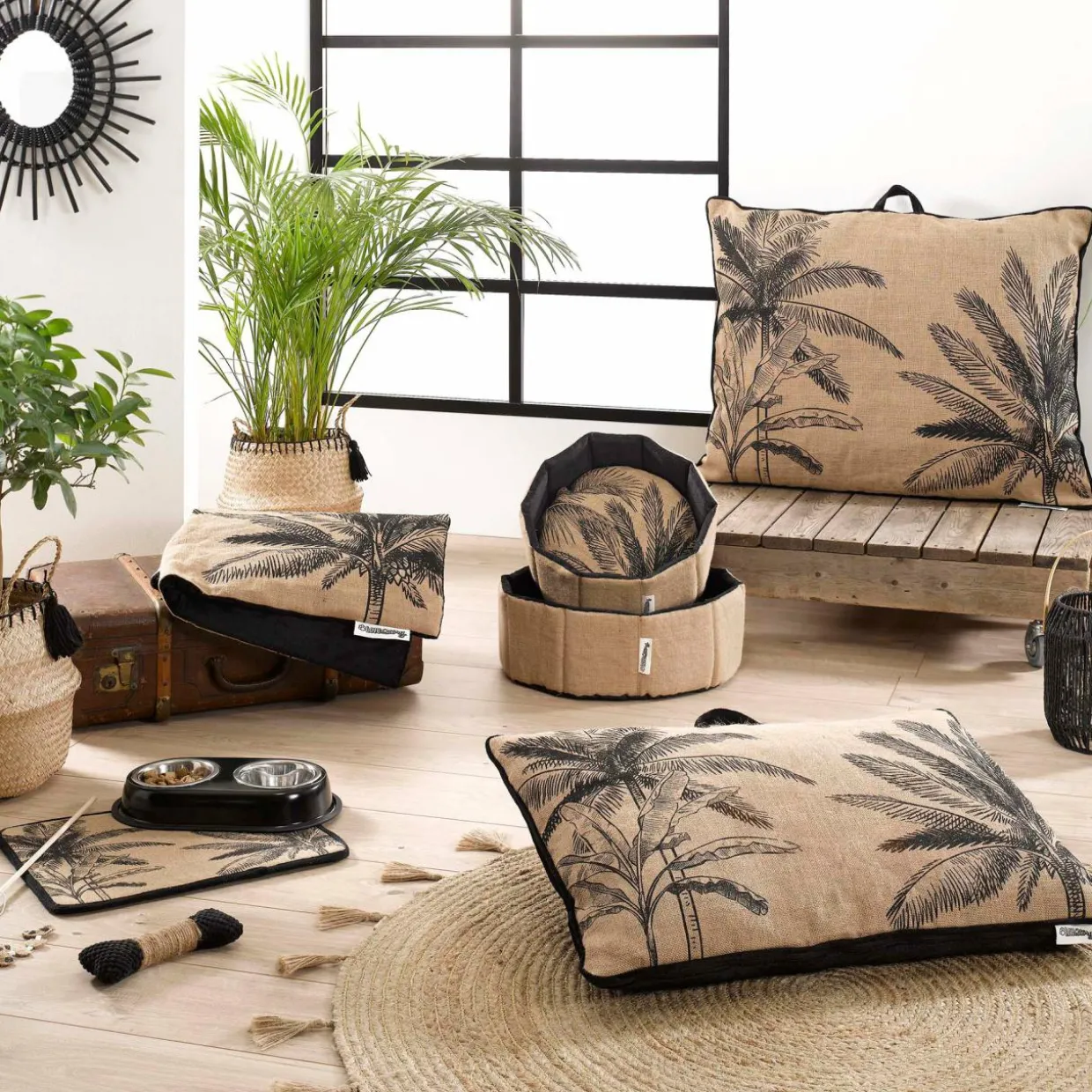 Matière : jute, fibres végetales et garnissage en fibres de polyester recyclées.