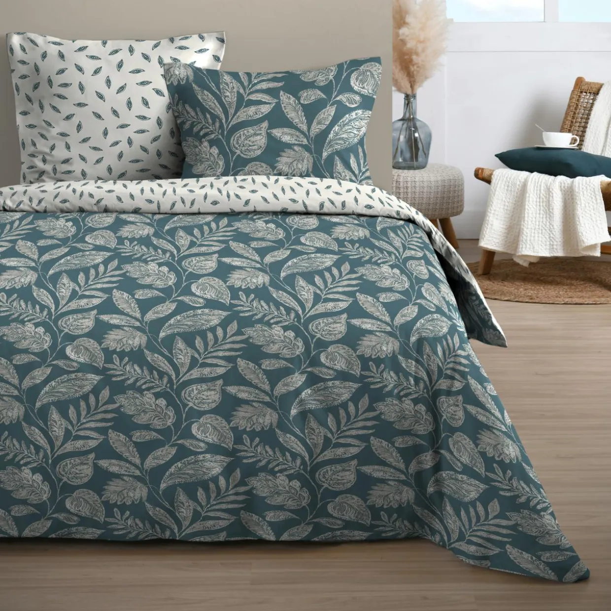 Finition : Taies d’oreiller à motifs recto / verso. Les 2 faces sont visibles sur la photo de l’article.