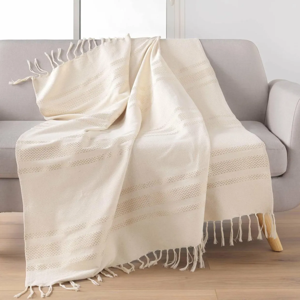 Imprimé : plaid à rayures et à franges.