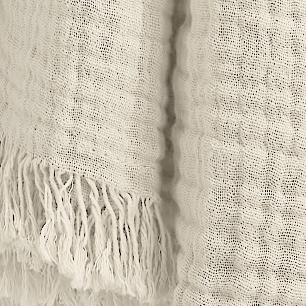 Naturellement gaufré, ce plaid en gaze de coton ne nécessite pas de repassage.