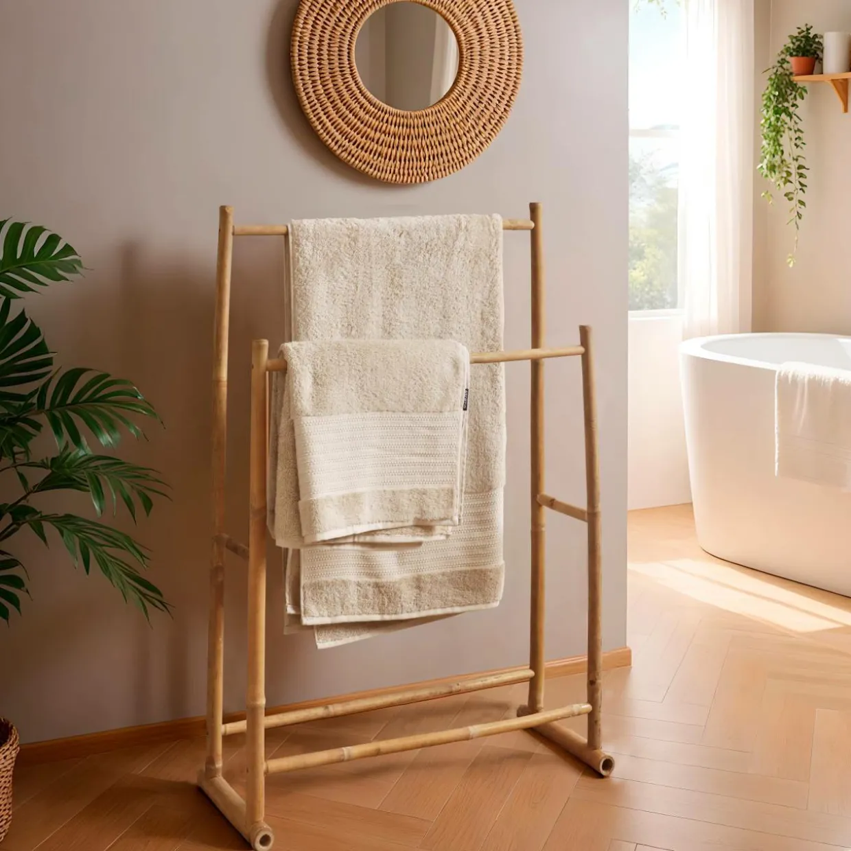 Le porte-serviette fabriqué en canne de bambou Hanoï est un choix esthétique et pratique pour votre salle de bain. Avec ses deux niveaux, il offre amplement d’espace pour suspendre vos serviettes, les gardant à portée de main et organisées.