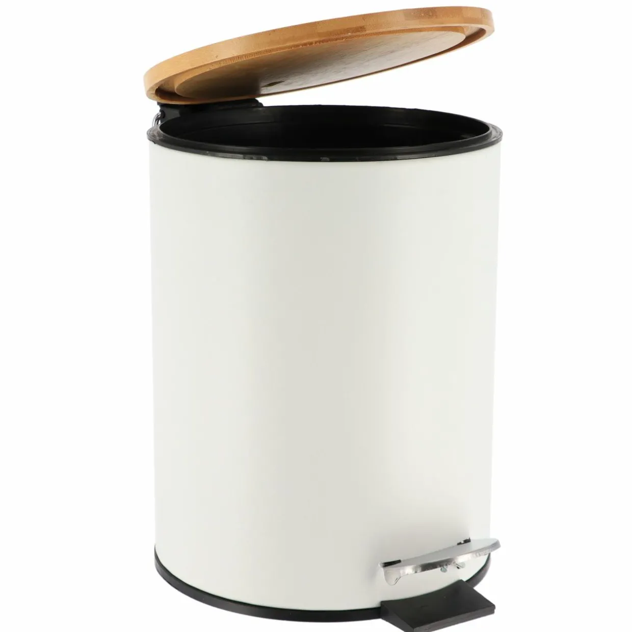 Couleur : blanc, couvercle bambou et pédale argent.