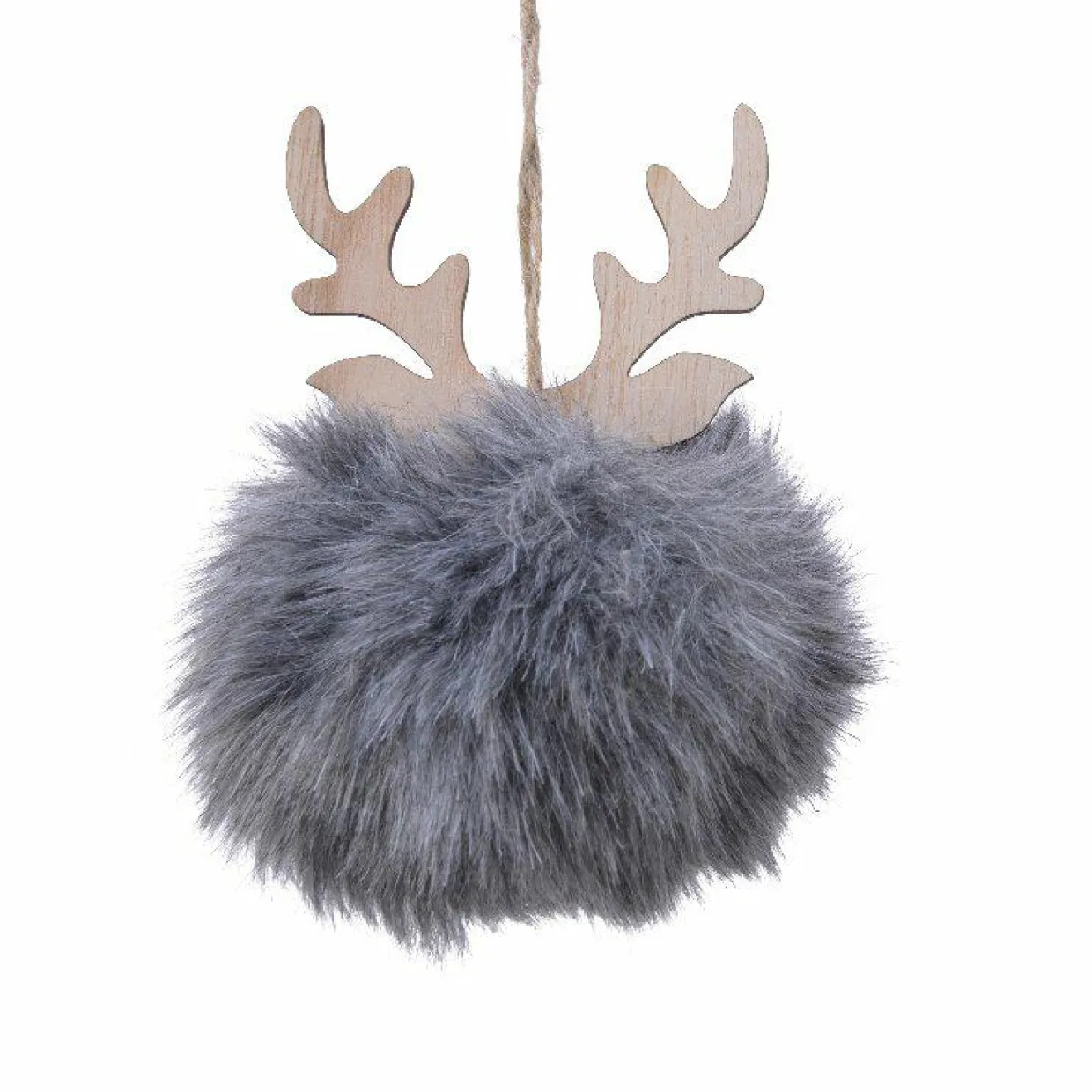 Suspension de fête (H12 cm) Rond Ours blanc et noeud en jute
