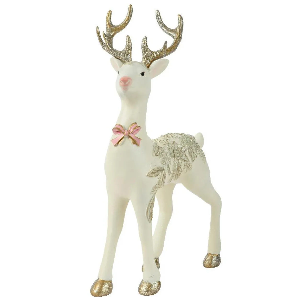 Ce renne de Noël Prince des Bois, de couleur blanc, or et rose avec une finition paillette, est un véritable chef-d’œuvre fait main. Il apportera une touche festive et chaleureuse à votre décoration de Noël.