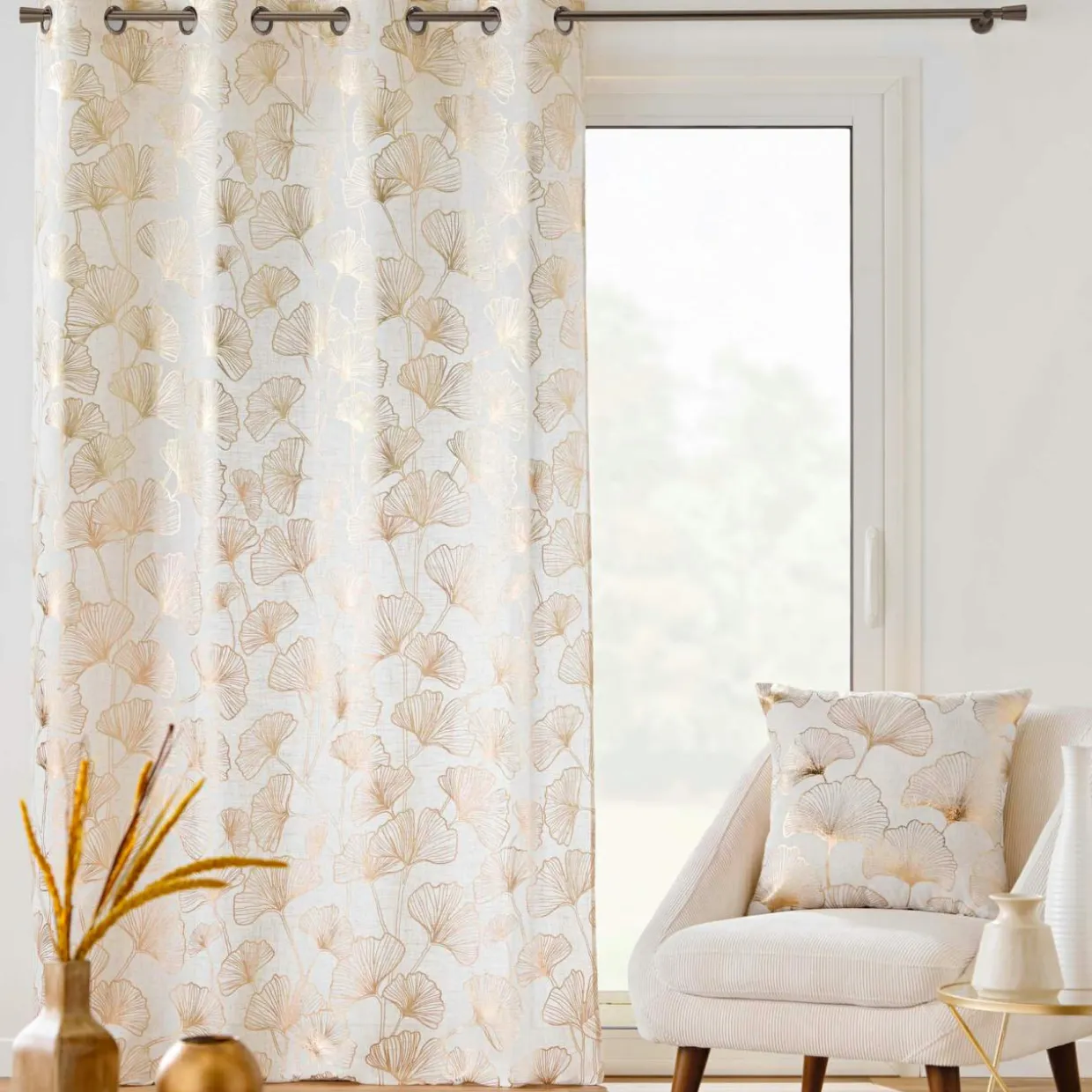 Ce rideau Kenzy, avec son imprimé métallisé floral, apporte une touche d’élégance et de sophistication à votre intérieur. Son style végétal s’intègre parfaitement dans une décoration naturelle et apaisante.
