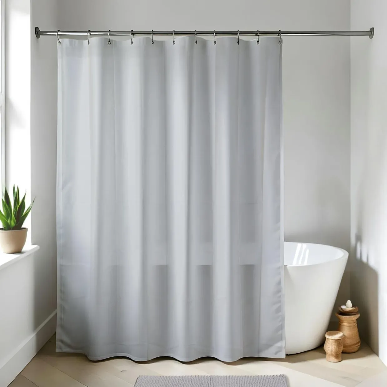 Finition : 12 oeillets renforcés pour l’accrochage (les 12 anneaux de douche ne sont pas fournis).
