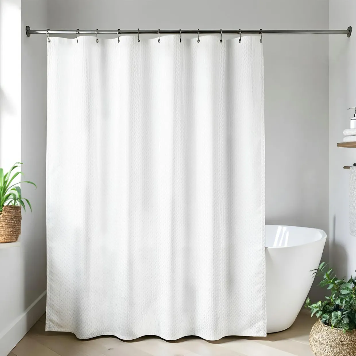 Apportez une touche de nature à votre salle de bain avec notre rideau de douche en microfibre ultra-doux. Son design raffiné, délicatement gauffré dans la matière, crée un jeu de textures élégant et moderne. Imperméable et facile à entretenir, il offre une ambiance apaisante tout en préservant votre intimité.