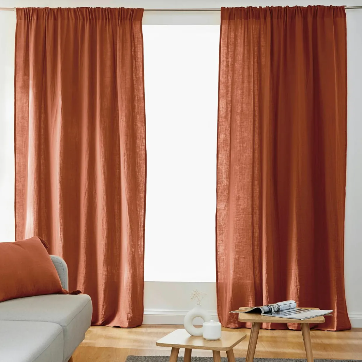 Naturellement gaufré, ce rideau en gaze de coton ne nécessite pas de repassage.