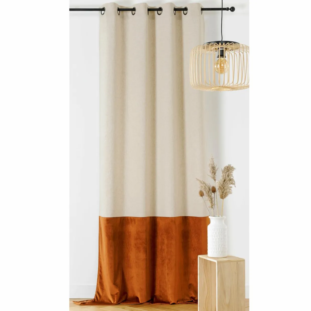 Matière : 54 % polyester et 46 % lin, bas du rideau effet velours.