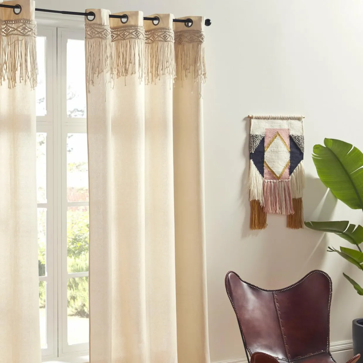 Ce rideau donnera un style hippie et folk à votre intérieur, avec sa frange en macramé d’inspiration ethnique.