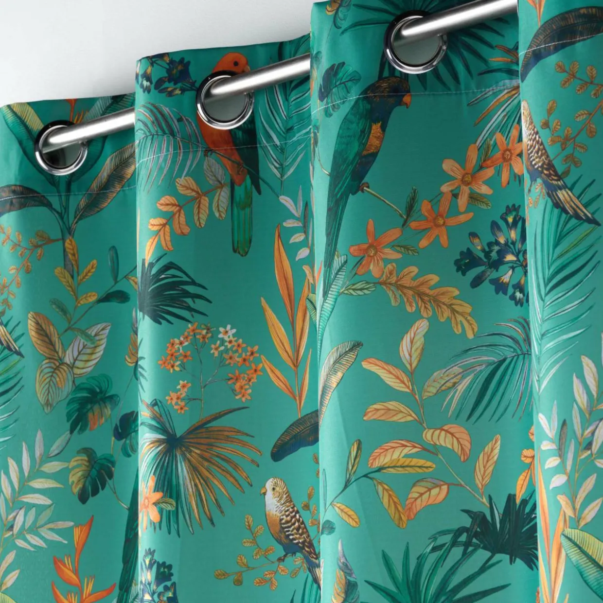 Imprimé : rideau à motif feuillage exotique.