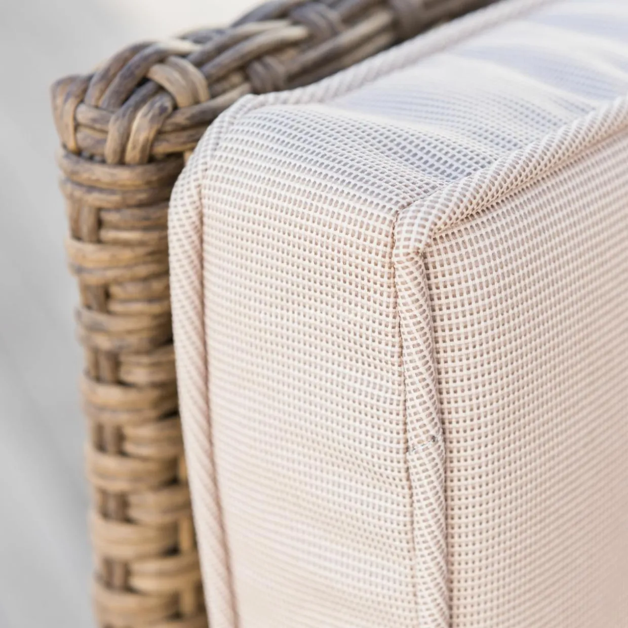 – Coussins déhoussables : déperlants en polyester (220 gr/m²). Densité 24kg/m3.