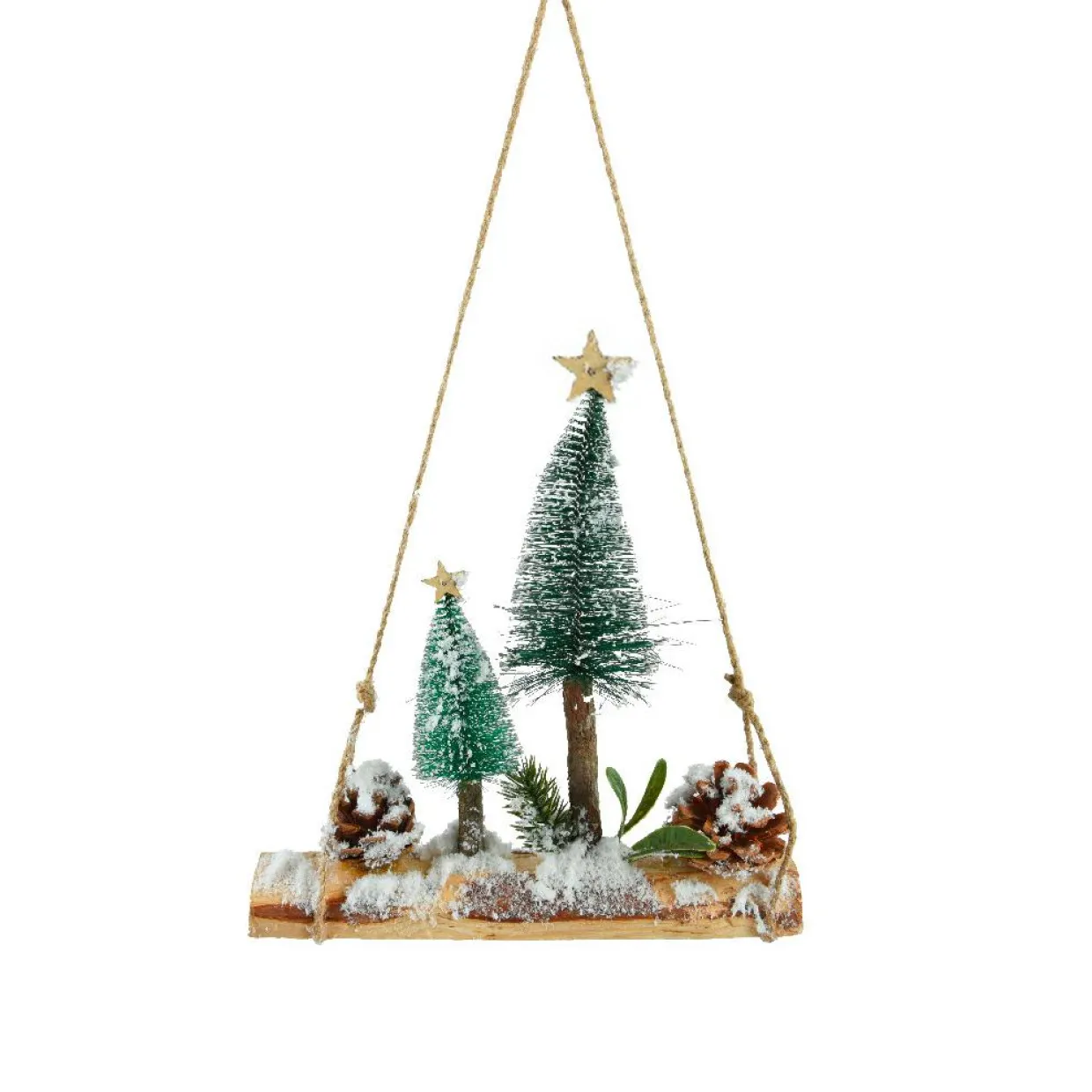 Suspension de fête (H12 cm) Rond Ours blanc et noeud en jute