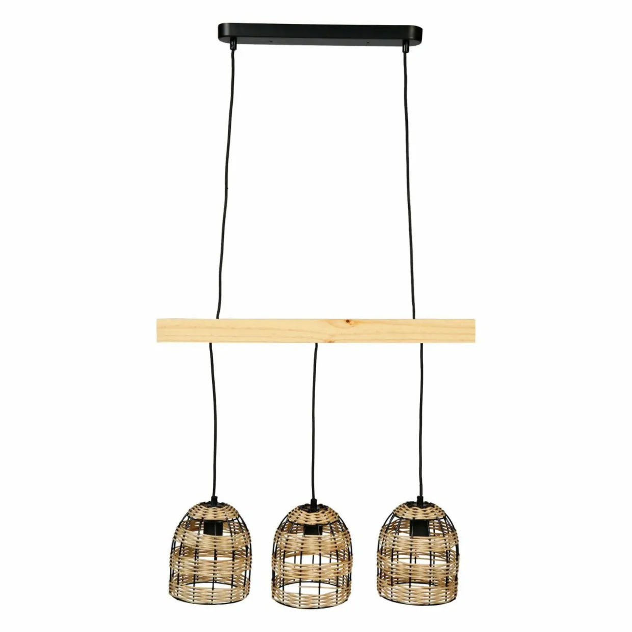 Originalité assurée avec cette suspension et ses 3 abats-jour en bambou tressé.