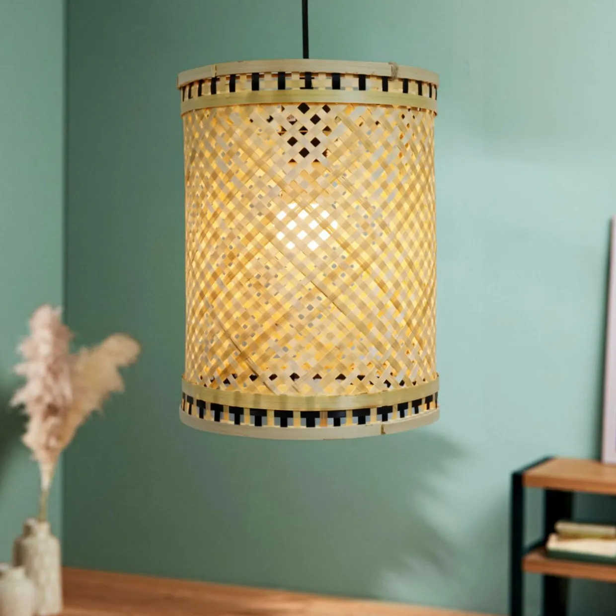 Chaque suspension est tressée à la main, ce qui peut entraîner de légères irrégularités et des variations de teinte dues à la couleur naturelle du bambou.