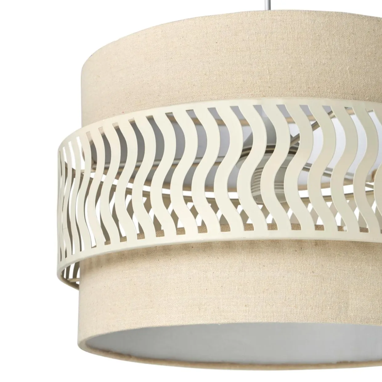 La suspension Oyona en métal et tissu beige apportera une touche d’élégance et de chaleur à votre intérieur. Son design épuré et sa couleur douce s’intégreront parfaitement dans une décoration d’inspiration scandinave ou bohème.