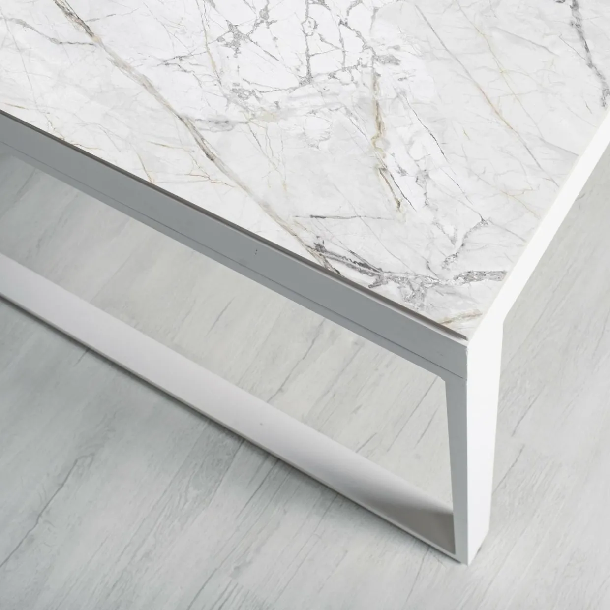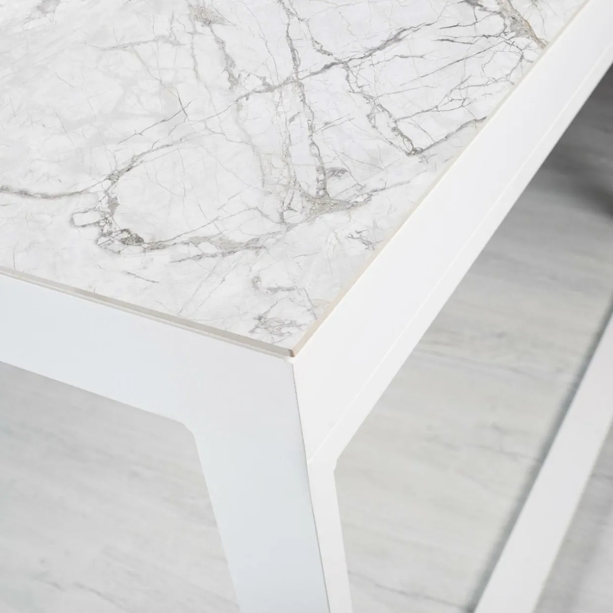 Choisissez l’élégance en installant sur votre terrasse la table de jardin Kore 12 places au design contemporain. Sa structure en aluminium solide et son plateau en céramique effet marbré blanc allient modernité et durabilité, pour un espace repas à la fois chic et fonctionnel.