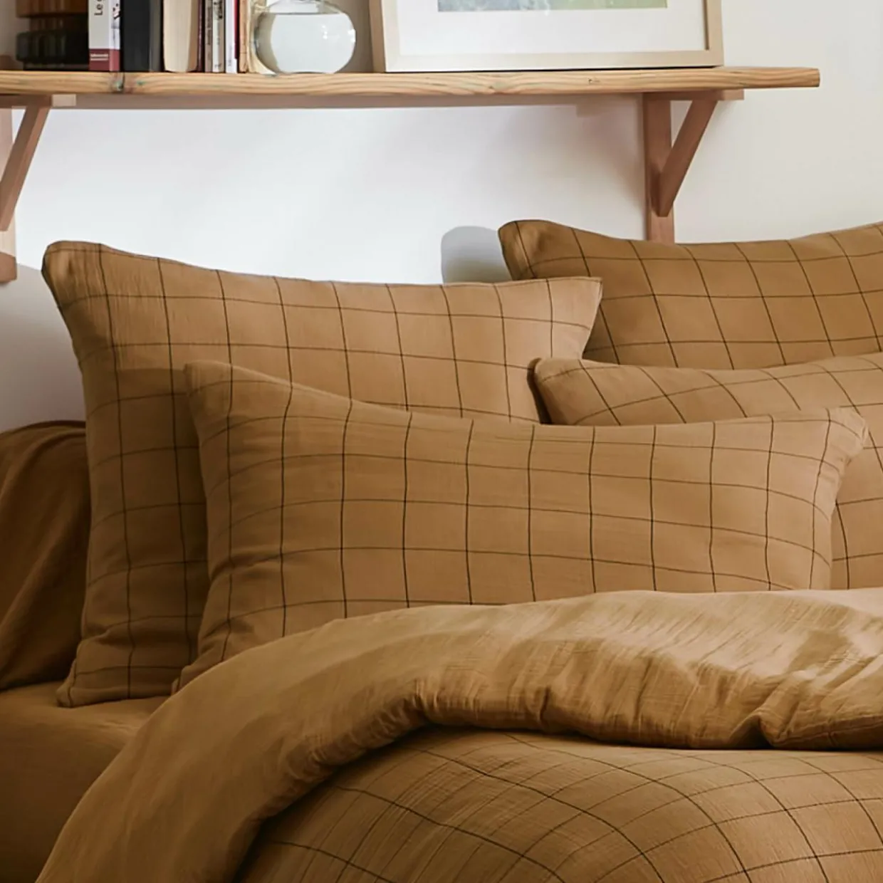 Imprimé : taie à grands carreaux.