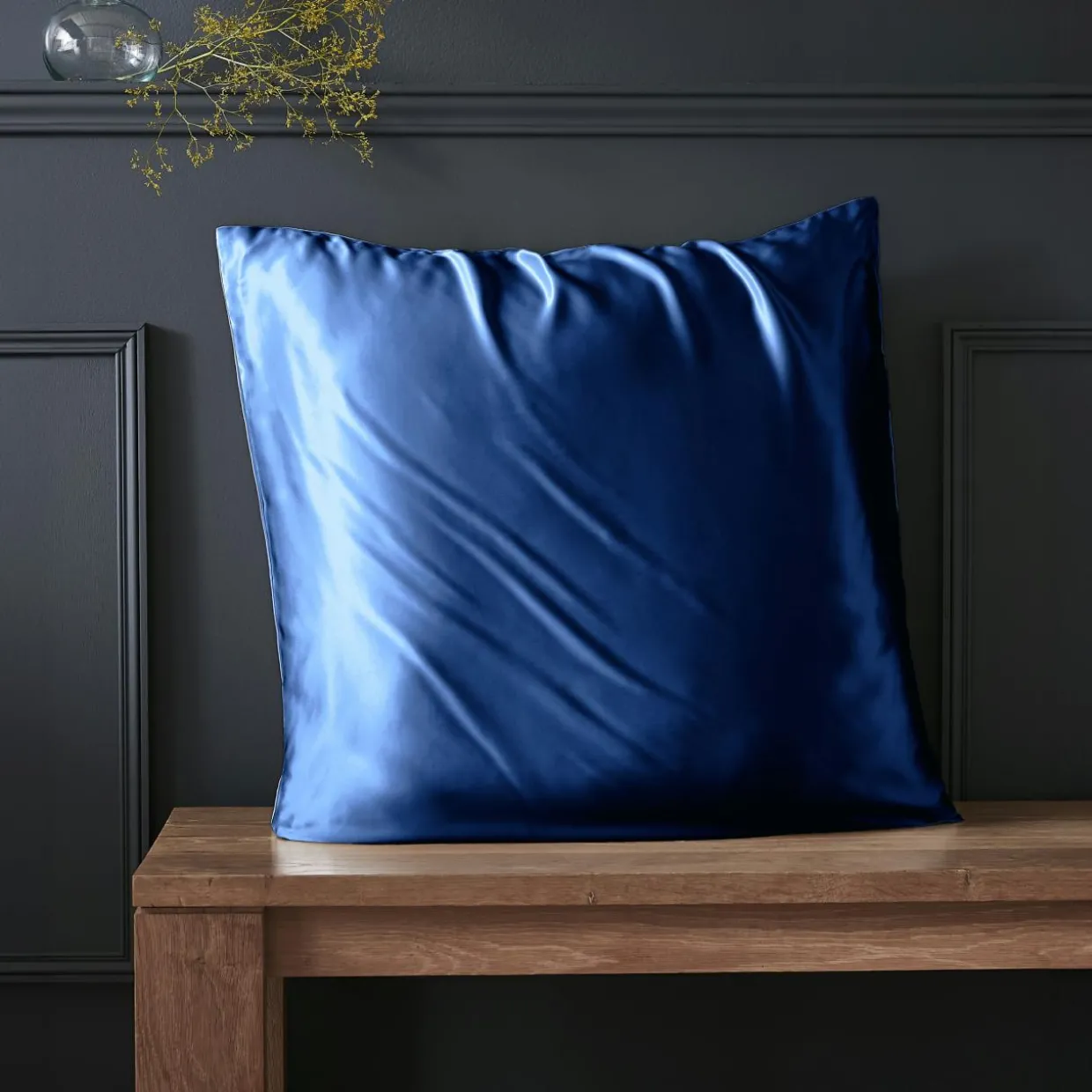 Taie d’oreiller carrée soie de mûrier (63 x 63 cm) Mizuki Bleu marine