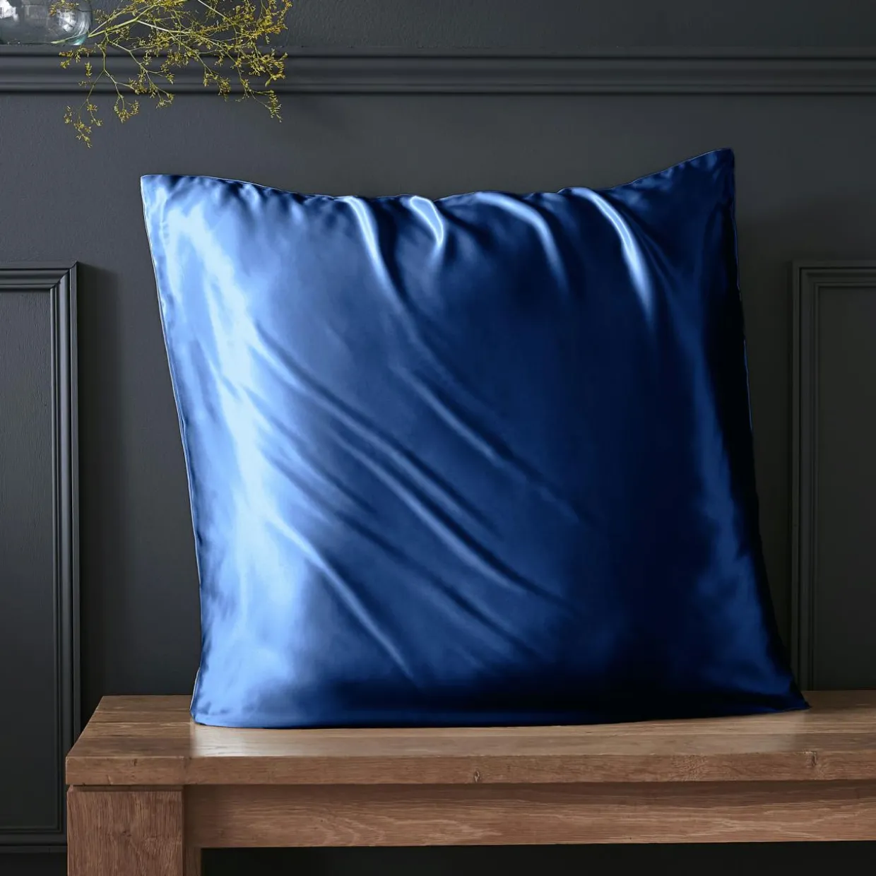 Taie d’oreiller carrée soie de mûrier (80 x 80 cm) Mizuki Bleu marine
