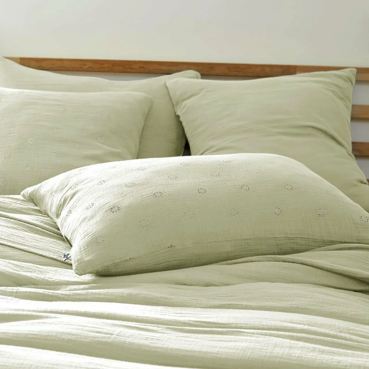 Naturellement gaufrée, cette taie d’oreiller en gaze de coton ne nécessite pas de repassage.