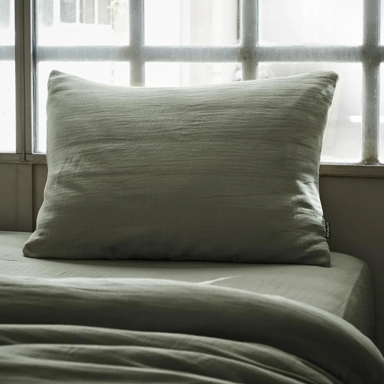 Taie d’oreiller rectangulaire gaze de coton (50 x 70 cm) Gaïa Vert romarin