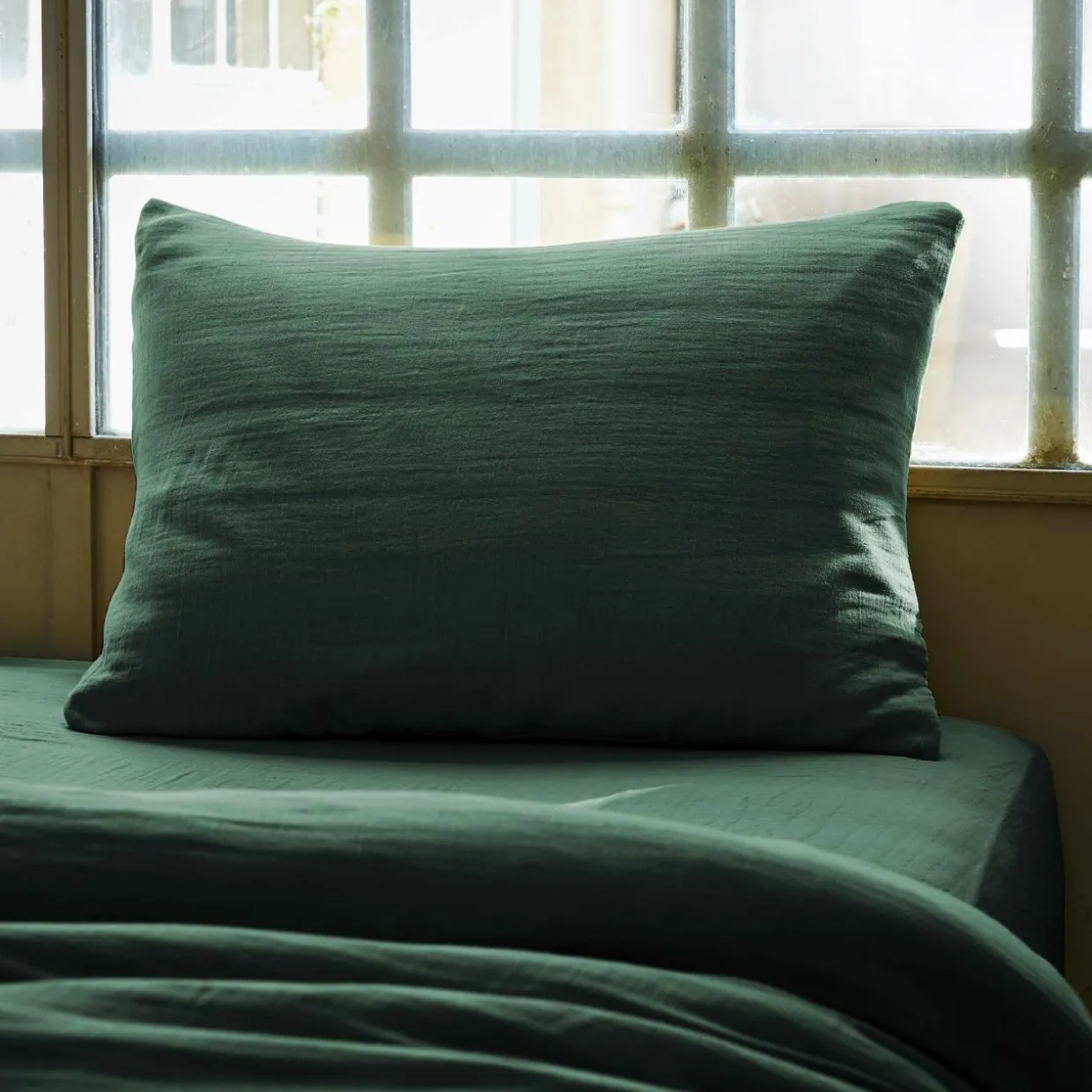 Taie d’oreiller rectangulaire gaze de coton (50 x 70 cm) Gaïa Vert sapin