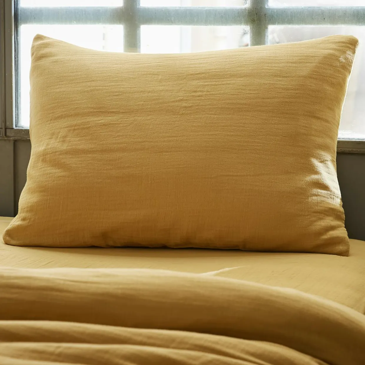 Taie d’oreiller rectangulaire gaze de coton (50 x 80 cm) Gaïa Jaune safran