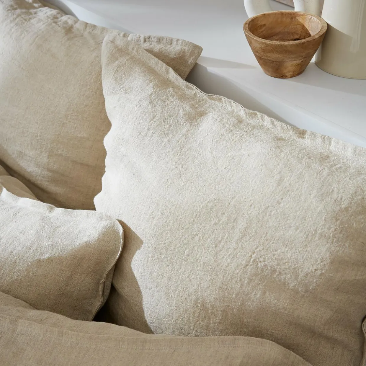Taie d’oreiller rectangulaire lin lavé (50 x 80 cm) Louise Beige