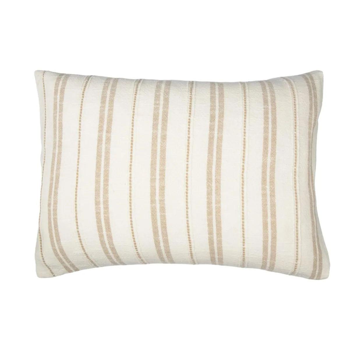 Cette taie possède une face en coton texturé, avec des rayures en relief, et une face en percale de coton.