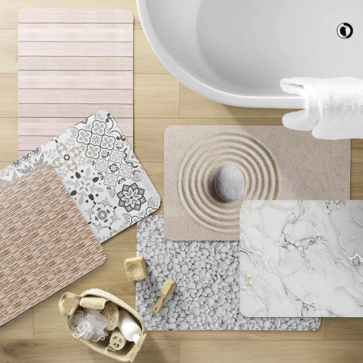 Matière : dessus 100 % polyester (160 gr/m²) et dessous 100 % caoutchouc.