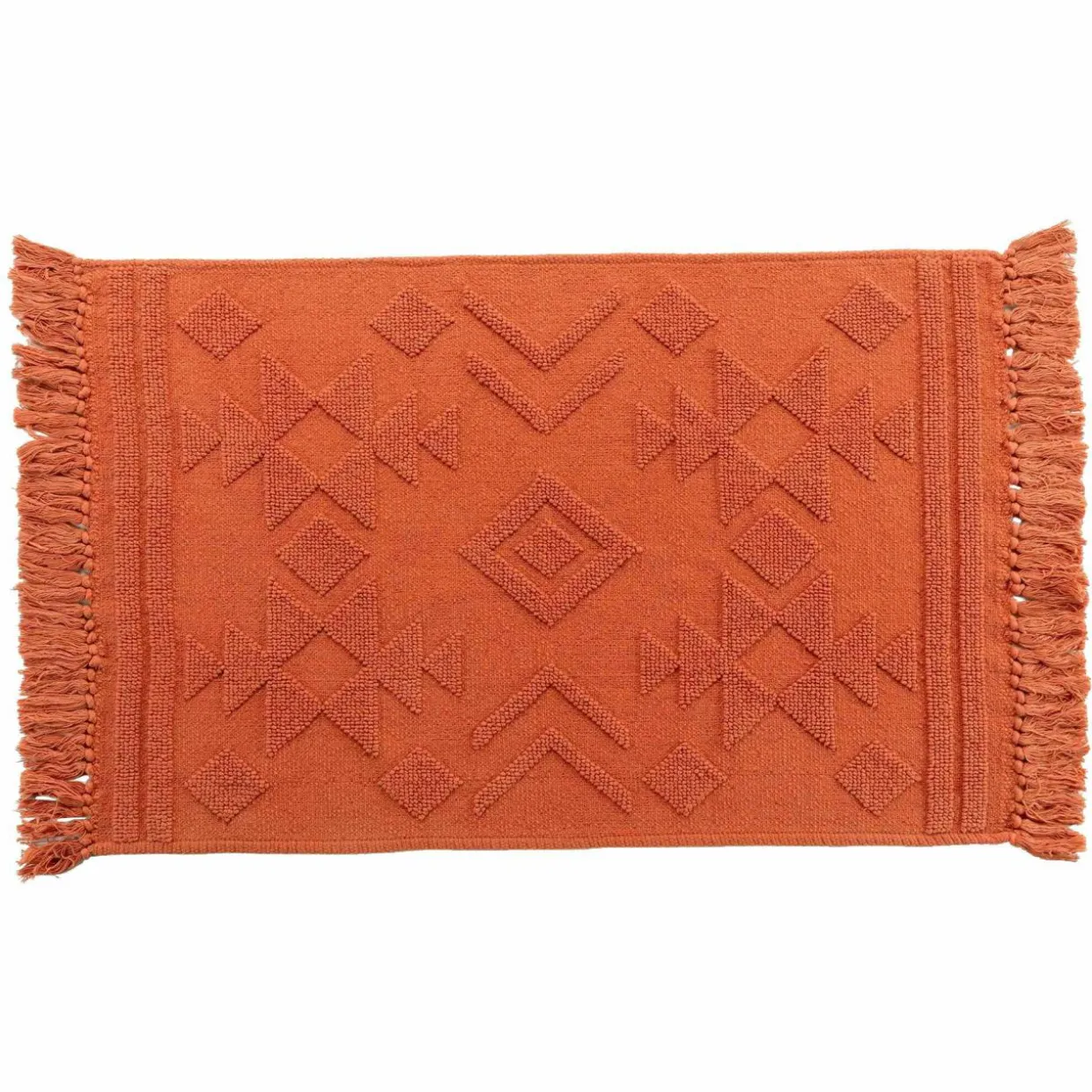 Imprimé : tapis à motif ethnique et à franges.