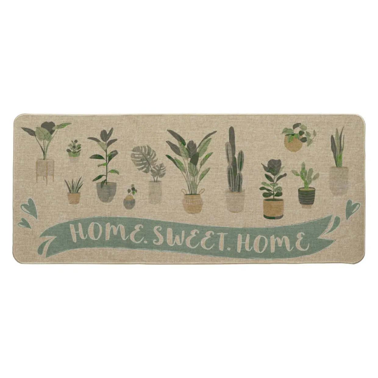 Imprimé : tapis à motifs plantes vertes.