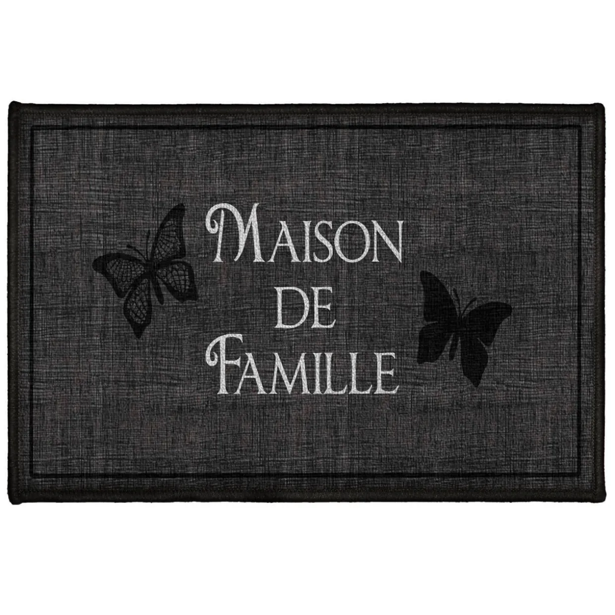 Imprimé : motif papillon et lettres.