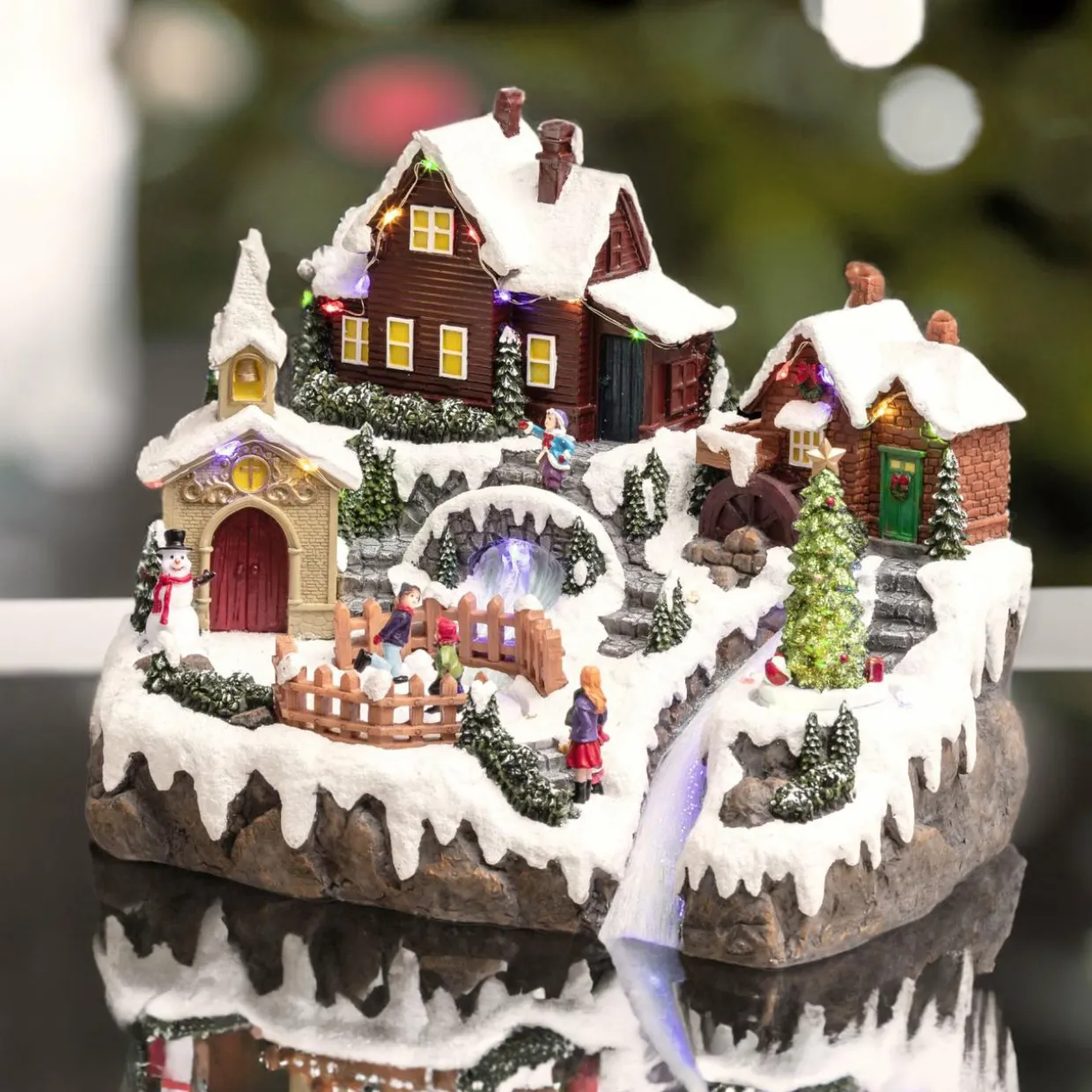 Scène lumineuse avec mouvement. Enfants et sapin en mouvement. 28 LED fixes et clignotantes.