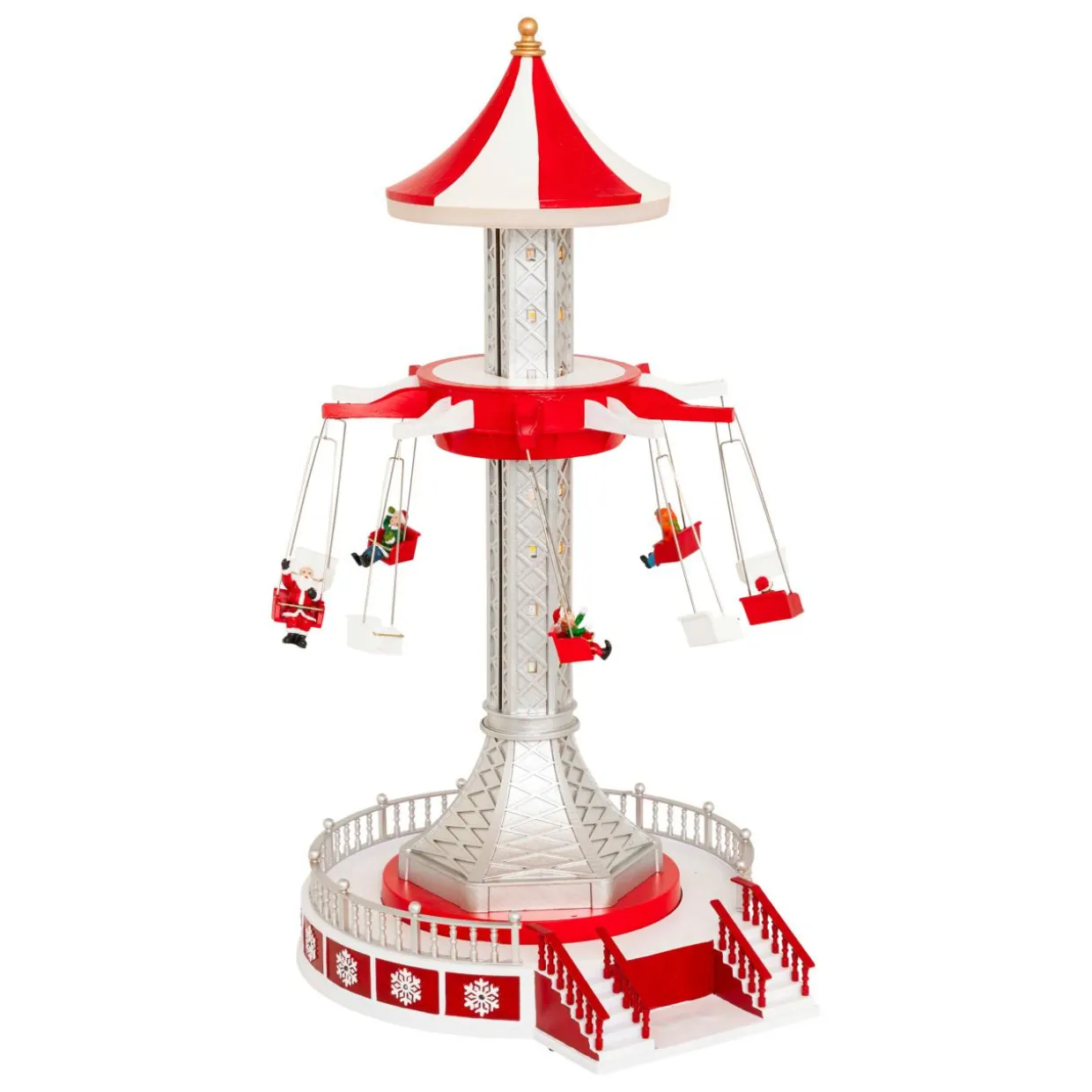 Ce splendide village de Noël musical et animé est un véritable enchantement pour les yeux. Avec son manège de chaises volantes, il apportera une touche de féerie à votre décoration de Noël.