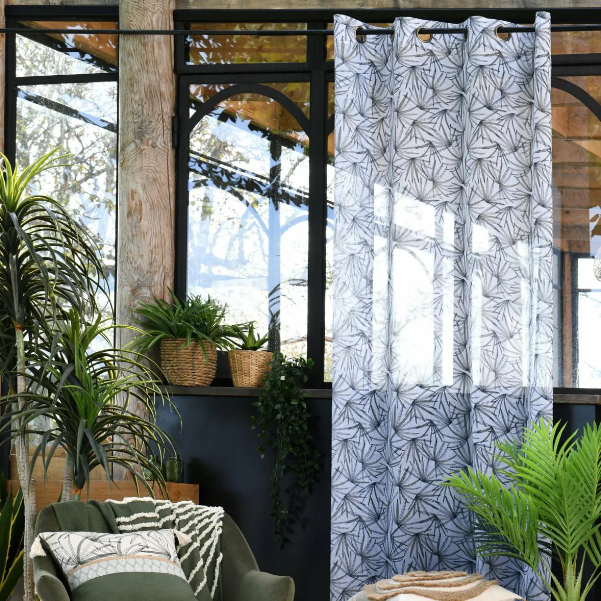 Un voilage au style exotique et tropical, parfait pour une touche moderne et déco dans la pièce.