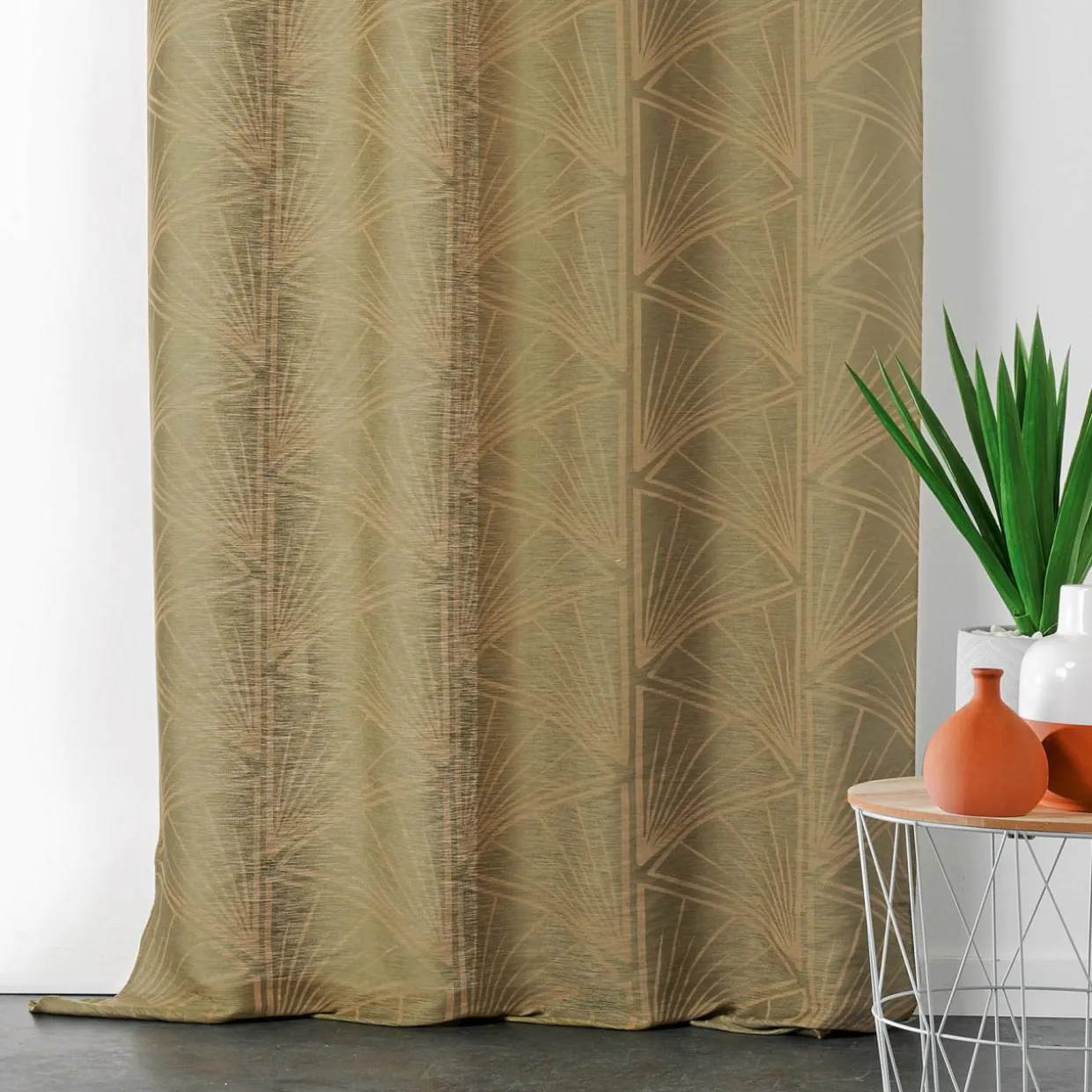 Un voilage aux imprimés éventails tissé dans le respect des normes françaises.