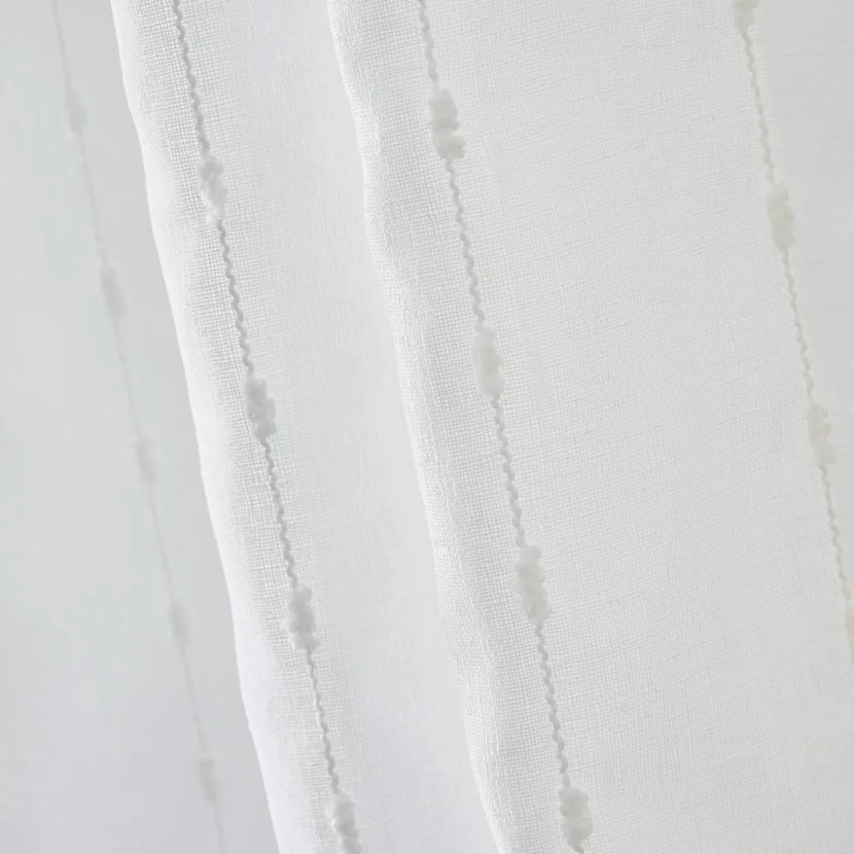 Finition : passe-tringle avec galon fronceur. Voilage à pompons. Emballage eco responsable sans plastique.