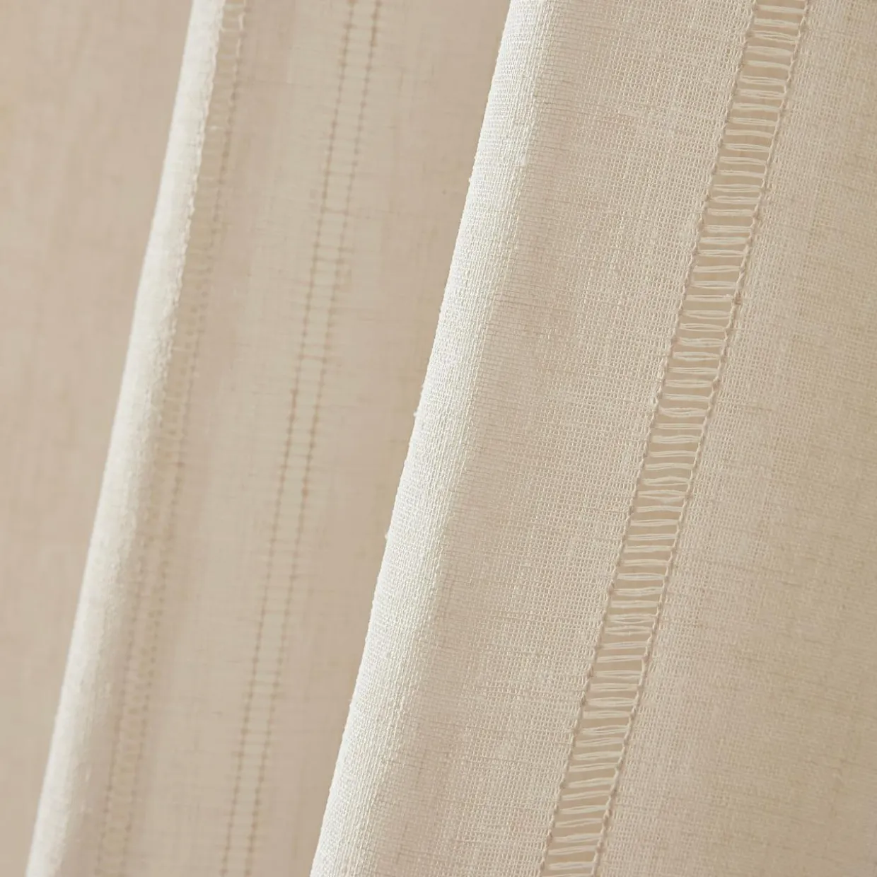 Craquez pour la collection Léontine by Eminza, une sélection de voilages à fines rayures au style naturel et doux.