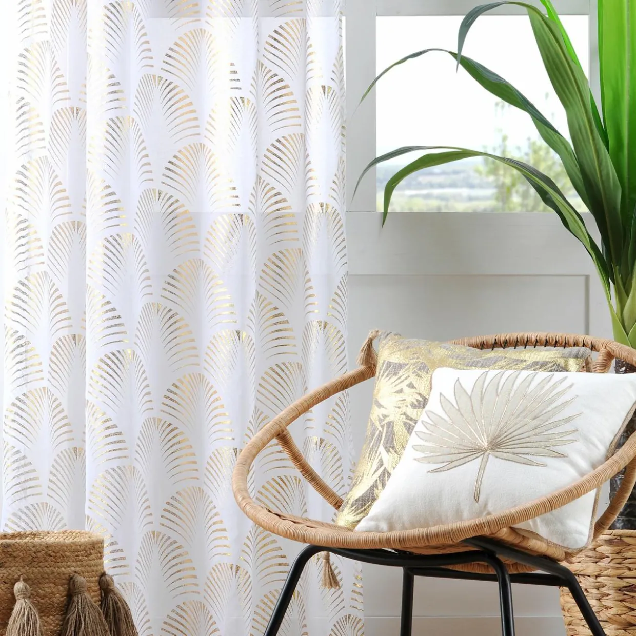 Pour une atmosphère exotique et chic, optez pour ce voilage à motif doré qui sera du plus bel effet sur vos fenêtres.