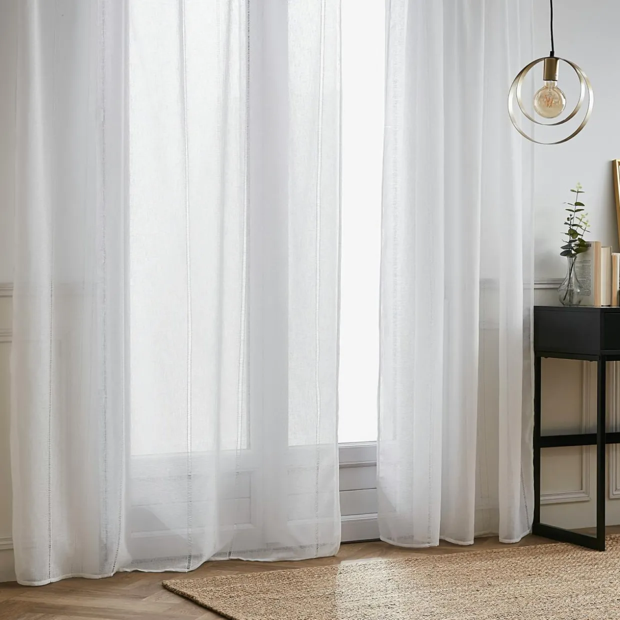 Craquez pour la collection Léontine by Eminza, une sélection de voilages à fines rayures au style naturel et doux.