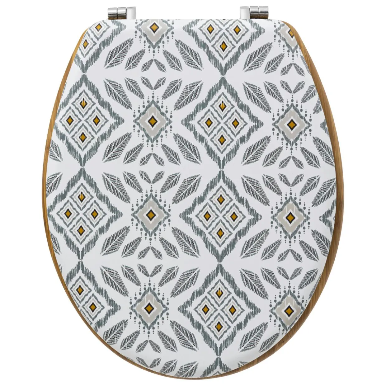 Imprimé : abattant WC à motif ethnique au recto et uni au verso.