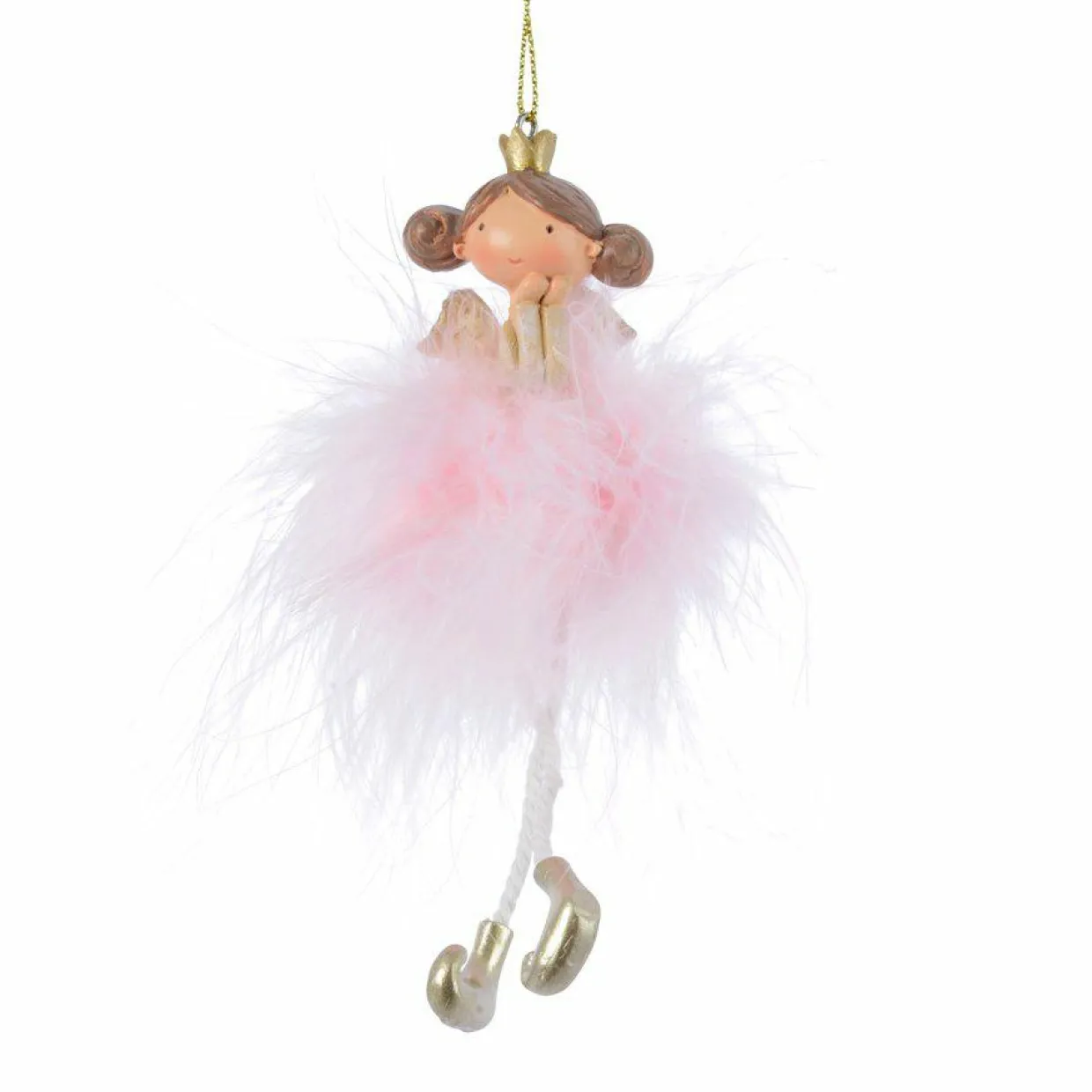 Suspension de fête (H12 cm) Rond Ours blanc et noeud en jute
