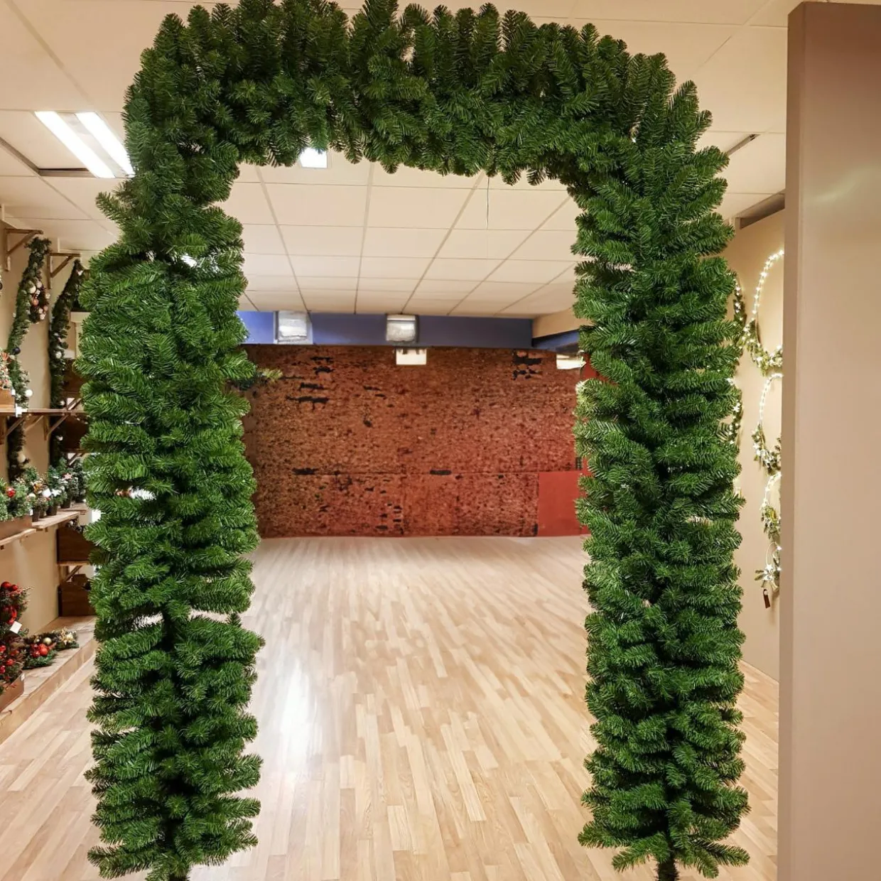 Sublimez votre jardin ou une entrée avec cette arche décorative géante composée de branches de sapins, qui accueillera chaleureusement vos invités.