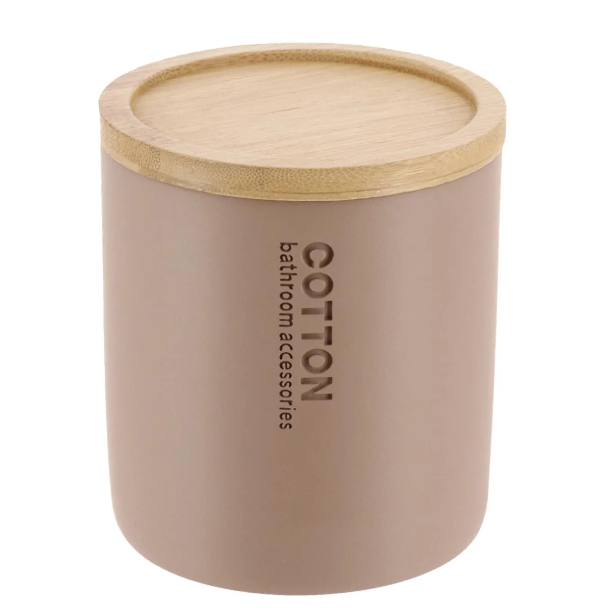 Optez pour une salle de bain organisée et élégante avec cette boîte à cotons en polyrésine au fini mat et son couvercle en bambou naturel. Pratique et esthétique, elle protège vos cotons de la poussière tout en apportant une touche chaleureuse et moderne à votre espace.