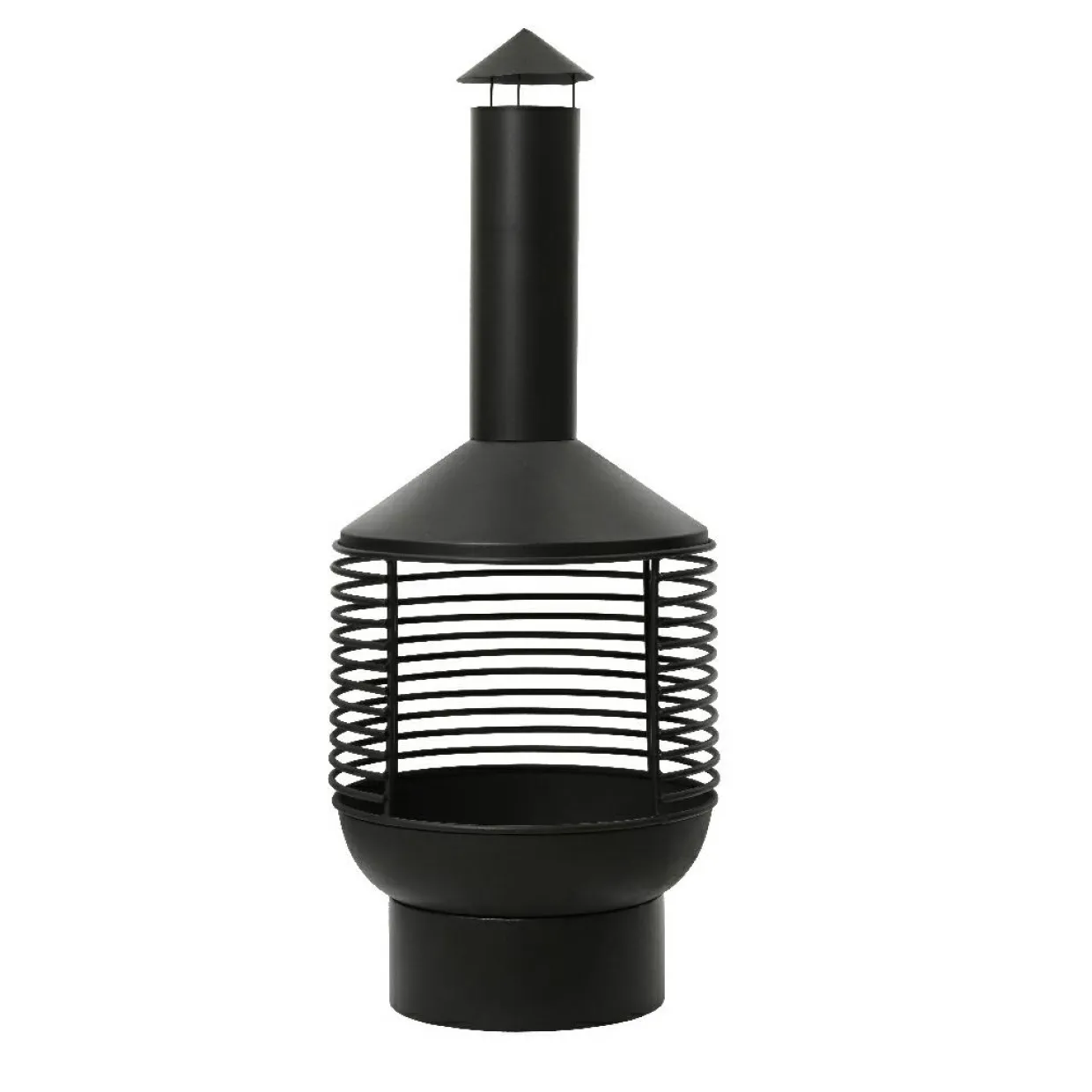 La cheminée, dotée d’un revêtement noir résistant à la chaleur, arbore un aspect rustique renforcé par sa couverture. Grâce à son foyer surélevé, votre pelouse et vos plantes restent préservées, assurant un feu de camp sécurisé.